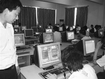據管理電腦的一名女士介紹,這里180臺電腦全部能上網,除上課時間外,均對學生開放。“老師要求學生不要玩游戲、聊天,但大部分學生聽不進去,仍然玩各自喜愛的游戲。”據了解,在這里上網每小時收0.8元。