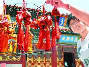 本報訊(記者李環宇)今天8時30分,孔廟和國子監博物館的大門剛剛打開,專程趕來的市民吳先生便徑直來到位于孔廟大成殿西南側的祈福包售貨處,興沖沖地為今年參加高考的女兒購買了一只黃色的祈福包。隨著高考的臨近,有著“金榜題名”、“狀元及第”等吉祥寓意的祈福筆、祈福包等物件受到了考生和家長的青睞,而全國聞名的北京孔廟和國子監博物館出售的祈福包更是受到家長和考生們的追捧,有的家長甚至坐飛機專程從外地趕來孔廟,只為“求”個祈福包。