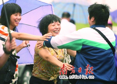 “熊抱”帶隊老師考生淚流滿面