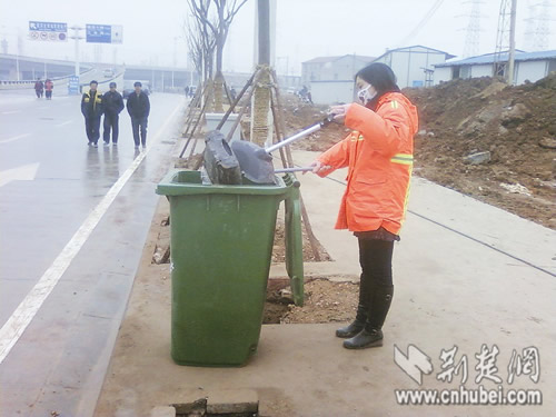荊楚網消息 (楚天都市報) (記者聶麗娟 通訊員易先云 張凱揚)新年元旦放假的第二天,也是付莎莎到武漢火車站當清潔工的第九天。清晨6點整,她穿著嶄新的橘紅色環衛工作服,左手拎著鐵撮箕,右手拿著一尺多長的鐵夾子,彎腰拾撿路面上的礦泉水瓶子、塑料袋、餐巾紙、煙頭等廢棄物。