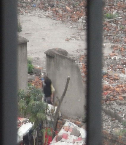 發帖者說,“成都某大學的一對情侶就這樣饑渴難耐啊,在學校附近一被拆遷的房子一堵墻下偷歡,沒有一片瓦為他們遮擋,太可悲了。”