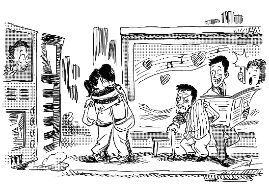 經(jīng)常在這里等車的人都見(jiàn)過(guò)這對(duì)學(xué)生戀人。初三女學(xué)生小張有點(diǎn)害羞地說(shuō):“愛(ài)情很美好,戀愛(ài)也正常,我們隔壁班有七八對(duì)這樣的戀人,老師也都知道。其中一對(duì)學(xué)習(xí)都很好,成績(jī)?cè)诎嗌隙寄芘胚M(jìn)前十名!