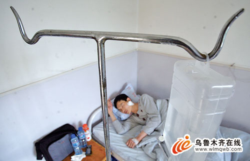 烏魯木齊在線訊(記者劉盼 梁坤 實(shí)習(xí)記者郭曉寧攝影報(bào)道) 5月13日中午,新疆法制報(bào)攝影記者郭詠在烏魯木齊市幸福路15小學(xué)附近采訪時(shí),遭到一店主毆打,面部受傷。新疆記者協(xié)會(huì)副主席、新華社新疆分社社長樊英利前往醫(yī)院看望慰問受傷記者。