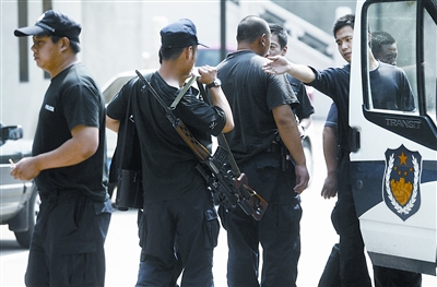 12時,記者看到身穿黑色T恤的特警背著背包陸續進入行政樓。此時,有消息傳出,劫持者手持的是一把非制式仿六四手槍,槍為金屬外殼,具備極強殺傷力,人質非常危險。