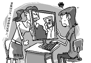 這個一直躲在電腦背后的“男友”叫楊紅,今年20多歲,是南京某高校的學生。去年,楊紅在網(wǎng)上認識了郭霞,兩個人在網(wǎng)絡上很談得來。因為楊紅一直以男生的身份在網(wǎng)絡上和人聊天處事,郭霞也對楊紅的身份信以為真。結果,兩個女生開始在網(wǎng)絡上談情說愛。郭霞是個單純的女孩,一直以為自己找到了一個真心的男朋友,當楊紅要求郭霞給自己發(fā)裸照看看時,郭霞也照辦了。