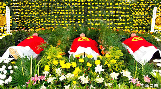 中新網武漢10月28日電 (記者 艾啟平)10月24日下午,湖北荊州10多位大學生手拉手結成人梯營救落水的兩名少年,其中有三名大學生獻出了年輕寶貴的生命。28日上午,湖北荊州市新北門外的殯儀館內舉行了三位舍己救人大學生的追悼會。湖北省、荊州市、長江大學有關負責人以及社會各界群眾到現場參加了追悼會。