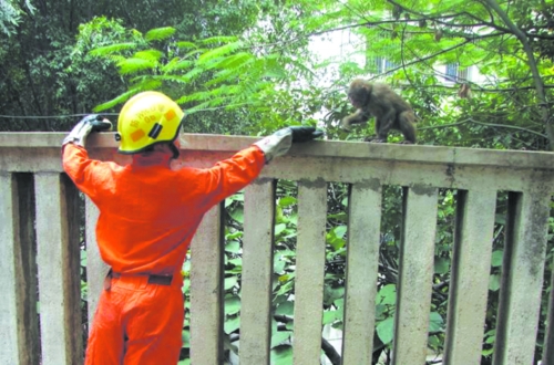 “119嗎?我們學(xué)校來了一只頑猴,請幫忙擒拿!”昨日上午,一只小猴子闖入攀枝花市第九中學(xué)校園內(nèi)“搗亂”,校方發(fā)現(xiàn)后立即報了警。經(jīng)過10多分鐘的較量,小猴子被消防官兵擒住后送往公園放生。