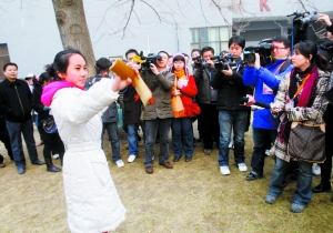 來自山東濟南藝校的戴安娜一陣清脆的快板立即引來媒體的鏡頭。戴安娜說,她學了兩年多山東快書和快板,目前已經能表演多個小段,和兩三個傳統大段快板書。今天的初試主要考朗誦和集體小品,小品由8個人一組集體表演,戴安娜所在小組抽到的題目是“意外的財富”,小組考生們自編了一個關于分家產的故事。戴安娜說,她對今天的初試充滿信心。