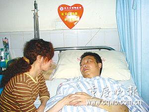 地震被埋的北川中學(xué)教師楊漢德,病床上一直自責(zé)沒能參與搶救自己的學(xué)生。“到醫(yī)院兩天了,他一直不愿說話。”昨下午,西郊醫(yī)院外二科病房,院長陳和平為傷員楊漢德遞上了慰問金,守候在病床前的妻子張鈺,看著表情木然的楊漢德,也不禁黯然神傷。