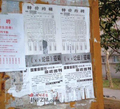 到2007年9月,在讀研究生已超過165萬人,大量教師、學生發(fā)表論文的需求,直接推動了學術刊物如火如荼地收取版面費。一名代理商提供了發(fā)表論文的“價目表”,省級刊物600-900元;國家級刊物900-1500元;核心刊物4500-18000元。“這已經(jīng)算低了,是有關系才能拿到的。”