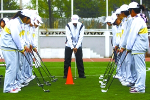 高爾夫這種高端運動,本學期正式走進了高中體育課堂。昨天,北京市普通高中新課程改革體育教學研討會在北京二中舉行,二中展示了包括高爾夫在內的近10項體育選修課。據悉,高爾夫在北京個別小學中已列入課程,但在中學中還比較少見。