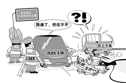 其二,公辦學校為主解決民工子弟的入學問題雖能保證教育的初始公平,但很難彌合深層次的教育不公難題。主要表現有三:一是學校擔心接受農民工子弟過多,會影響學校生源和教育質量;二是城里孩子不愿與他們同桌、同玩、同學習;三是城市學生家長認為孩子與外來務工人員子女一起學習會影響孩子成長。這些問題不解決,即使免除農民工子弟的學雜費,也很難保證免費義務教育落到實處。