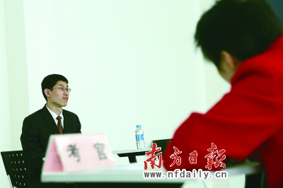 本報訊(記者/葉明華)為期兩天的深圳市2008年警察招考面試昨日在警校開始。從筆試、體能測試中突圍而出的1733名考生按綜合、消防、偵查、治安、監所管理和交通管理6個職系分別對口進行面試(如上圖,魯力攝)。