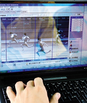 在五中的200米跑賽道上,起點處多了兩個黑盒子,終點處則有一個高臺,一個攝像鏡頭時刻對準終點線,當學生們沖過鏡頭前的一剎那,高臺上的工作人員就可以從電腦上看到清晰的沖線照片。“起跑線的兩個黑盒子其實是傳感器,當學生過線時,通過電磁波發射,令電腦系統開始計時,”操作電動計時儀的工作人員告訴記者,“終點線前的高速攝影機可以精確到1/1000秒,拍出非常精細的圖像,讓每個學生的成績誤差降到最小。”