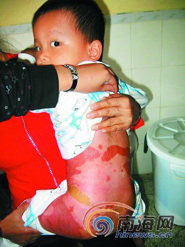 小志的母親黃春秀對記者說,她和丈夫楊昌奇不久前從定安來到海口打工,在義興街租房居住,幾個(gè)月前把小志從定安接到海口,但又沒時(shí)間照顧孩子,就把他送進(jìn)了附近的育才幼兒園,平時(shí)小志在幼兒園食宿。10月14日晚上,她突然接到幼兒園電話說孩子被燙到了。她和丈夫立刻趕到187醫(yī)院,看到孩子被燙掉的皮粘在被子上,非常慘。