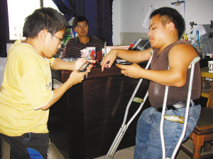 謝江海(學長):我和李浩都是殘疾大學生,我們在外面可能會遭到路人一些異樣的目光,但是我們應該報以平和心態。雖然身體有缺陷,但是我們要做到思想健康,心理健康。如果要在身體缺陷和心理缺陷中讓我選其一,我寧肯選擇身體缺陷,不希望自己做個心理有缺陷的人。本報記者 常宇