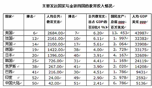 為了對中國教育競爭力在國際中的位置進行描述,我們選取了經合組織國家和金磚四國(巴西、俄羅斯、印度、中國)作為比較對象。