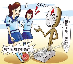 “一些學生依然喜歡零食,有的甚至一周長了七八斤,出于對學生前途的考慮,于是在本學期開始后不久向學生宣布了長胖一斤罰款50元的規定。”李琪說,這一規定宣布后,學生對體重控制就好多了。