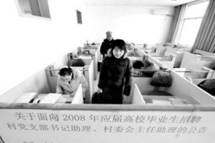 今天是北京市面向2008年應屆高校畢業生招聘村黨支部書記助理、村委會主任助理的第一天。