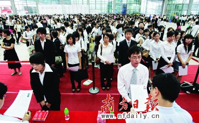 “在深圳已經找了近兩個月的工作了,很少有面試的機會,大企業都把招聘的目標瞄準了211工程學校,小企業提供的薪水又很低。從目前的形勢來看,要在深圳找到自己比較滿意的工作機會是比較渺茫了。”深圳大學法學院的小劉表示,他來自湛江,在仔細思考了幾天之后,他決定回老家找工作,“回家競爭沒那么厲害,也可以找熟人幫幫忙,至少比在深圳干等要強。”