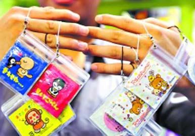 撲克牌的盒子、花哨的足球,看見這些在學生哥手機上晃晃悠悠的掛飾,誰能想到在花里胡哨的外表下面,藏著的竟是安全套!最近,一股用安全套做手機繩的風潮在廣州中學生中興起,廣州幾大潮流集散地都有專門出售這類手機繩的店鋪。據了解,這股風潮主要從日本傳入,有購買此類掛飾的學生表示,在手機上掛個安全套能“辟邪”和“招福”,更有人直言:“可應付不時之需。”