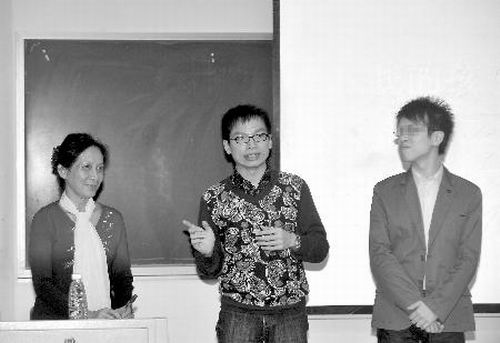 昨晚8時(shí)許,四川師范大學(xué)大學(xué)生心理健康教育服務(wù)中心和愛(ài)白成都青年同志活動(dòng)中心邀請(qǐng)吳幼堅(jiān)、鄭遠(yuǎn)濤及其男友來(lái)到校區(qū),為大學(xué)生聯(lián)手上了一堂同性戀話題的課。
