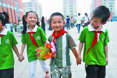 “好多家長(zhǎng)都想請(qǐng)災(zāi)區(qū)的孩子到家里做客!”六年級(jí)的婁娟老師說(shuō),家長(zhǎng)們給她打電話、發(fā)短信,希望能給他們機(jī)會(huì),讓孩子把來(lái)自災(zāi)區(qū)的新同學(xué)帶回家,給他們家的溫暖……