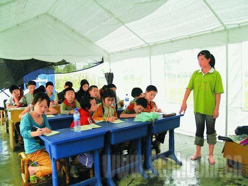 這是一所不同尋常的災區帳篷學校,從校領導到老師,都是一群十七八歲的少年。
