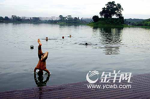 一位剛從水里鉆出來(lái)的學(xué)生證實(shí)了上述推斷:“不少市民傍晚會(huì)專門(mén)開(kāi)車來(lái)這里游泳,周末岸邊都停滿了外面來(lái)的小車。”他說(shuō),學(xué)校的游泳池開(kāi)放時(shí)間有限制,而且要收費(fèi),自認(rèn)為“水性好”的同學(xué)都樂(lè)意到中心湖游泳,“只要不下雨,這里的‘人氣’都很旺”。