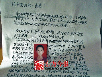 崔鑫給班主任的信 資料圖片