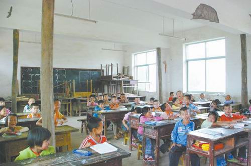 近日部分學(xué)生反映,今秋開學(xué)后西安市藍(lán)田縣湯峪鎮(zhèn)張坡村小學(xué)學(xué)生仍在地震損壞布滿支撐立柱的教室中上課,9月2日記者在藍(lán)田縣教育局了解情況時(shí),該局計(jì)財(cái)科負(fù)責(zé)人樊繼剛老師對(duì)記者說:“藍(lán)田縣地震損壞校舍修復(fù)問題有望9月底前得到解決,希望家長理解。”