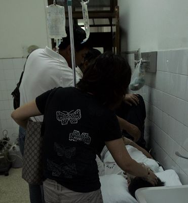 昨日下午2時40分,長海醫院洗胃室內,身穿印有復旦實驗中學字樣校服的賈偉躺在病床上,已經蘇醒,但十分虛弱,無力說話。他的奶奶和父母守護在病床前,默默注視著。