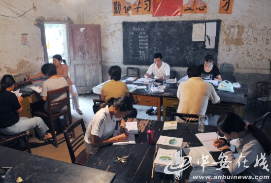 9月11日,明光市柳巷鎮中心小學部分教師在老校區的C級危房里辦公。