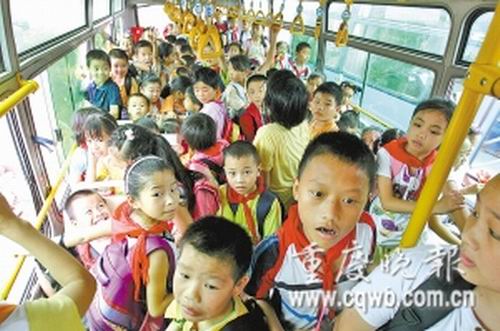 為解決進城務(wù)工人員孩子的行路難,渝北區(qū)仁睦小學(xué)從“對口幫扶學(xué)校”第三實驗小學(xué)租來一輛校車,放學(xué)時負責(zé)送師生們回家。然而,他們卻忽視了安全——準載50人的校車竟然實載了120人!