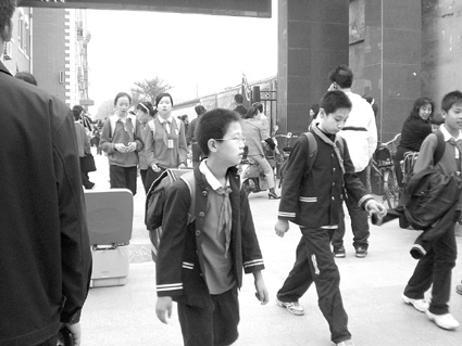 10月15日下午,身著統一校服的石家莊市某小學學生放學走出校園