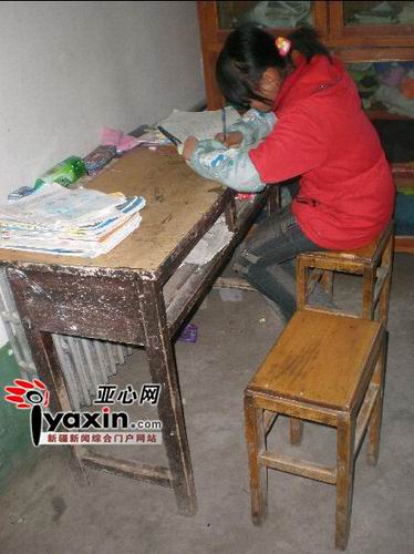 郭海菊的小女兒獨自做作業。而往常媽媽會坐在女兒身邊批改作業