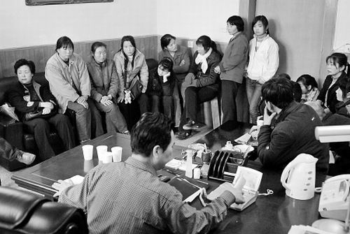 從昨天早上8時(shí)到下午5時(shí)30分時(shí),職工們一直圍坐在馬院長(zhǎng)辦公室里,沙發(fā)、凳子不夠坐,一些人干脆蹲在辦公室門外。“無法辦公,不得離開,也不能出去吃飯。”馬金玉說。