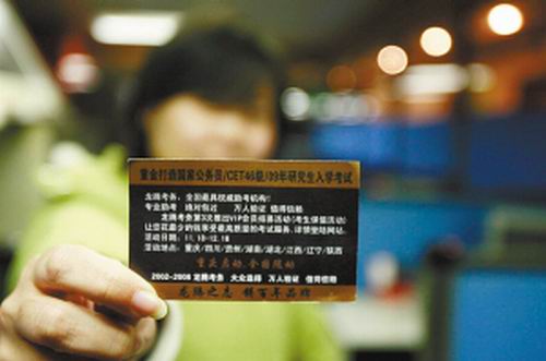 “絕對包過”的作弊廣告卡片。 記者 張錦旗 攝