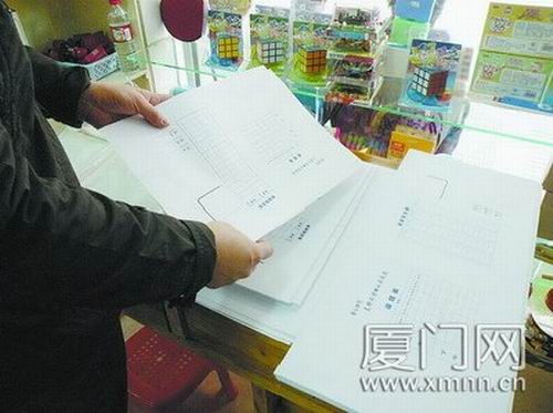 陳同學和蔡同學用的都是文具店里常見的一種白色書皮紙,課本用的是純白的,練習冊因為老師要登記成績,必須用一種印有成績登記表的。“校長說可以用掛歷紙,不過老師都讓我們用買的那種紙。”蔡同學說。