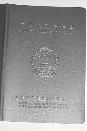 紫紅色的封面,中間燙有金色的國徽,上端還印有同樣金色的中英文“中華人民共和國”。這是一本國際商務單證員資格證書,內(nèi)頁用中英文字,印刷精美,還蓋有發(fā)證單位的大紅印章。