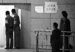 昨日傍晚6時35分,47號學生公寓南側(cè)地面上橫躺著墜樓男女的遺體,其中女孩身穿桃紅色睡衣,身下有大片血跡,男孩身穿灰色T恤衫,下穿牛仔褲。