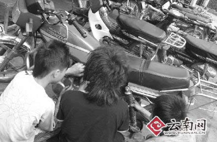 勁和斌見到記者有些不知所措,低著頭,不時搓著手上的油污。勁說回家后就再也沒有看過書本了,就算學校要他回去考畢業考,自己也沒有信心能考得過。斌說即便學校再叫回去上學,自己也不想回去了,雖然修理摩托車很累。