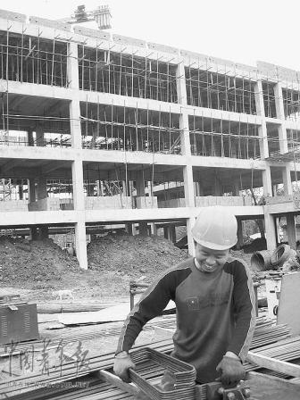 4月27日,記者來到四川省德陽市中江縣輯慶中學(xué)。在新校舍的施工現(xiàn)場,輯慶中學(xué)辦公室主任劉三貴告訴記者,震后,輯慶中學(xué)的校舍全部成為危房,經(jīng)專家論證,決定進行原址重建,重建的輯慶中學(xué)總占地41.44畝,其中新征地32.4畝,拆遷21戶。