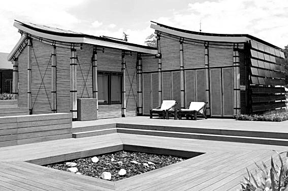 來自9個國家的17所大學參加了本次競賽。同濟大學“太陽能竹屋”以竹子為主要建材,其設計既體現了中國古典建筑的節能理念和美學元素,又巧妙運用了先進的太陽能光伏技術。竹屋采用中國古典建筑反宇屋頂結構元素,曲線的屋頂既能實現光伏電池板發電效率最大化,又有利于通風散熱;而“一室一廳”的院落格局則在體現中國傳統水鄉民居特色的同時悄然改善室外環境的微氣候。