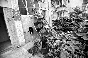 近日,在朝陽區東壩家園,居民在綠地上種的南瓜秧已經長到一樓的陽臺上。本報記者 王貴彬 攝