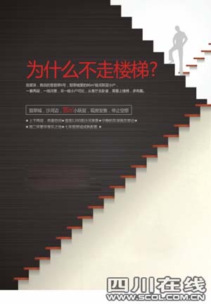秋季房交會(huì)就快到了,成都樓市又進(jìn)入了“金九銀十”的銷(xiāo)售旺季,各開(kāi)發(fā)商紛紛加大推廣力度,一時(shí)間,無(wú)論報(bào)紙、站臺(tái)、網(wǎng)絡(luò)、短信、廣播幾乎都成了房產(chǎn)廣告的主戰(zhàn)場(chǎng)。開(kāi)發(fā)商加大廣告投入,一方面是對(duì)十一假期抱有一定預(yù)期,另一方面也是為即將舉行的秋季房交會(huì)預(yù)熱,期待讓更多購(gòu)房者了解自己的樓盤(pán)。但連篇累牘的廣告,鋪天蓋地的資訊,總讓人目不暇接,卻難以留下深刻印象。以至于不少開(kāi)發(fā)商抱怨,廣告費(fèi)不斷攀升,廣告效果卻不夠理想。但事情總有例外,最近記者就發(fā)現(xiàn)了幾個(gè)能在眾多廣告中脫穎而出的創(chuàng)意廣告。
