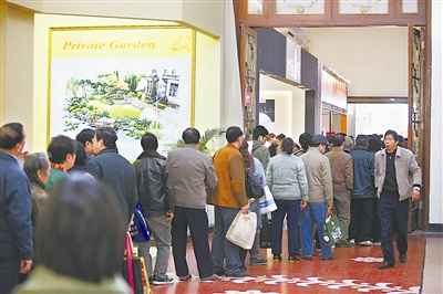 12月5日,上海房展會吸引了不少購房者。在一家房產(chǎn)商的展臺前,登記會員的市民排起了長隊。