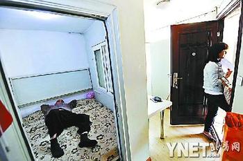 “豪華版”膠囊公寓位于安定門后肖家胡同,是由平房改造的。這個有72平方米使用面積的房屋本是黃家私房,他花了18萬重建,自己設(shè)計裝修,建成了可自由組合的四套“豪華”膠囊公寓。走進(jìn)公寓,左手邊是廚房和洗澡間,熱水器、洗衣機(jī)、微波爐等生活用品一應(yīng)俱全。再往里走,左右分別有兩個防盜門,將房間分成兩個單元,每個單元里有一間容納了雙人床的“膠囊”和一個可單獨(dú)出租的閣樓,“膠囊”外是公共空間,整套房間可以拆成4戶分別出租。