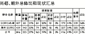 12月6日,SOHO尚都和朝外SOHO的近百名業(yè)主在SOHO尚都3層咖啡廳內(nèi)召開了業(yè)主大會,記者了解后得知,這近百名業(yè)主各自擁有SOHO尚都和朝外SOHO的一間到幾間商鋪不等,基本在2006-2007年間收房。據(jù)業(yè)主商小姐介紹,業(yè)主們收房三個月之后開始出現(xiàn)問題,因為生意慘淡,租戶開始鬧事,之后新的招商招不上來,出租情況一直很差,目前朝外SOHO基本一半商鋪空置,出租情況最好的SOHO尚都西塔也有35%左右的商鋪空置。