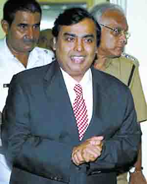圖:身價430億美元、在福布斯榜上名列第5的印度富豪穆凱什·安巴尼。由其掌控的信實(shí)集團(tuán)把握著印度諸多經(jīng)濟(jì)領(lǐng)域的命脈,2002年時該財團(tuán)的總資產(chǎn)相當(dāng)于印度GDP的3.5%。圖片來源:北京晚報